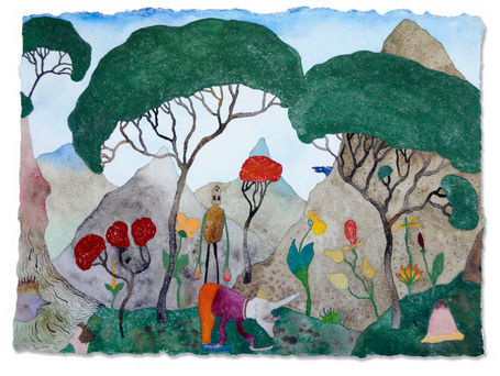 Akvarelleissani ollaan omillaan jossain paikassa, jossa ei ole oikein mitään tuttua, ehkä ollaan lähdössä jonnekin tai matkalla ilman selvää päämäärää. Koskaan ei tiedä, mitä seuraavan vuoren takaa ilmestyy.